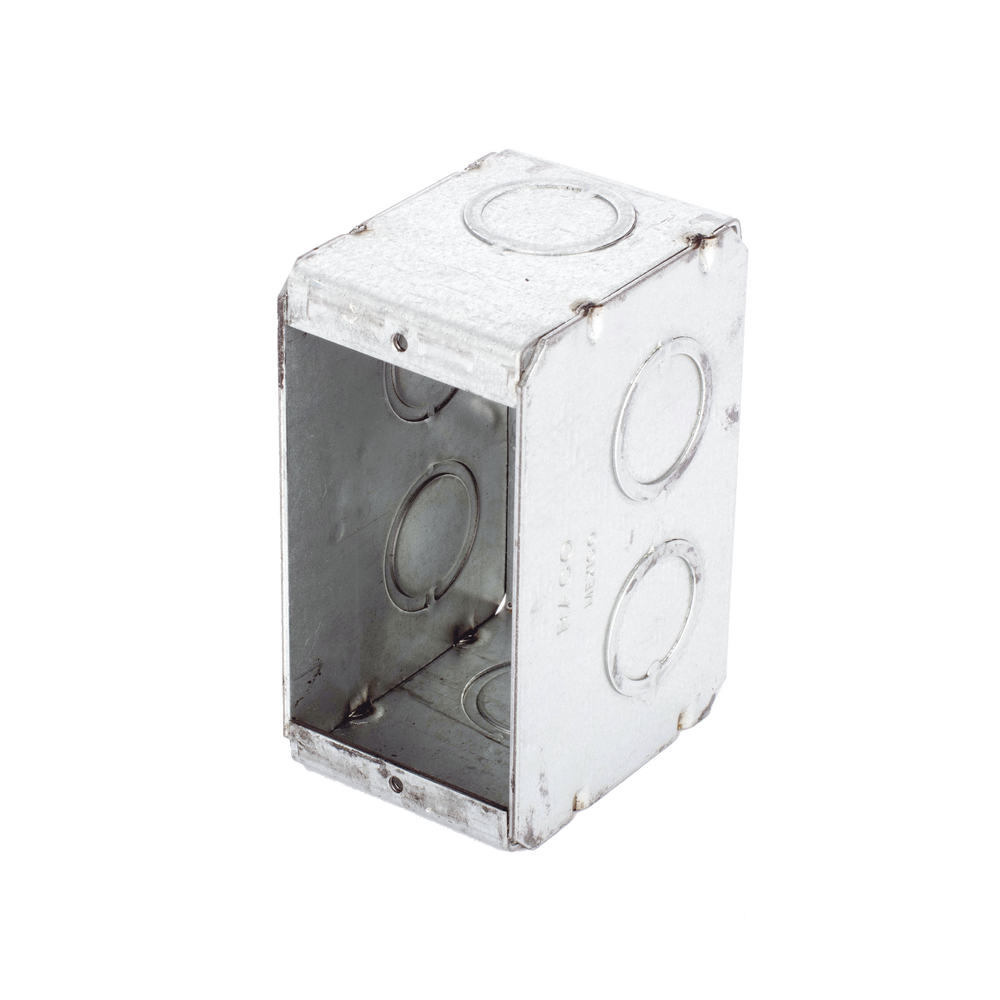 Las cajas multigang de acero galvanizado de 2 1/2″ de profundidad con entradas para tubería de 1/2″ y 3/4″.