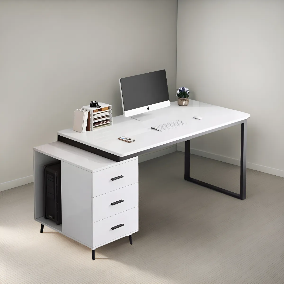 - Almacenamiento inteligente: Los cajones laterales proporcionan un almacenamiento práctico para documentos, suministros y otros artículos de oficina. Mantén tu espacio organizado y todo al alcance de la mano.