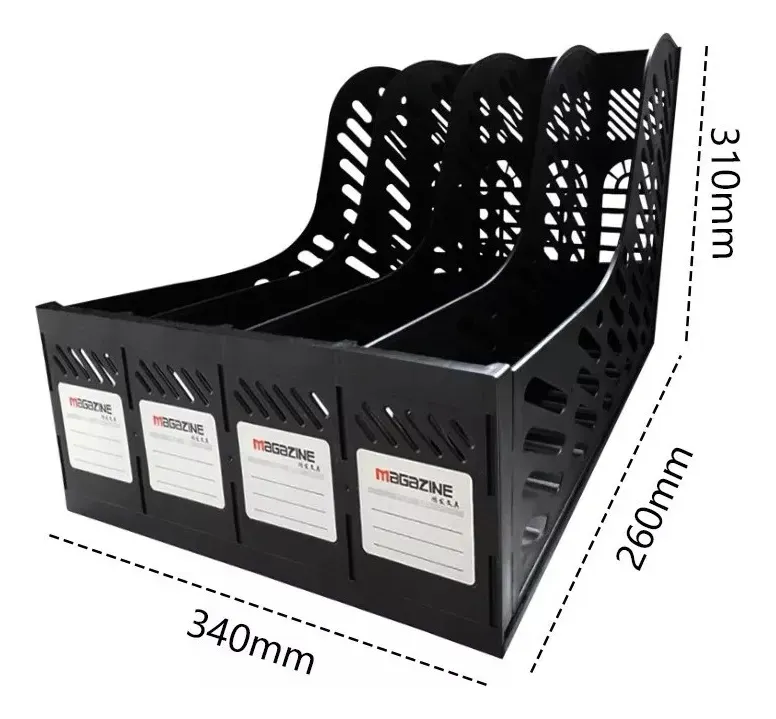 4 compartimentos para archivos con gran capacidad, ideal para el hogar, la oficina, la escuela, accesorios de organización de ordenadores, puede almacenar archivos, libros, bolígrafos, calculadoras, etc. Con barra de título para una categorización clara, puede encontrar diferentes archivos rápidamente y mejorar la eficiencia del trabajo.