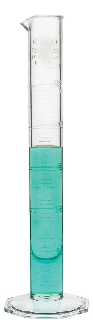 - Cilindro de medición con una capacidad de 250 ml de plástico de polipropileno de origen estadounidense de primera calidad. Tolerancia de clase B. Calibrado para contener.