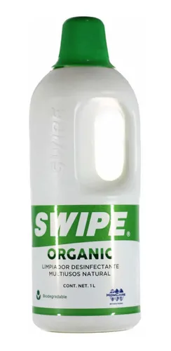 Swipe Organic es un limpiador desinfectante multiusos concentrado. Se trata de un producto innovador, desarrollado con la más alta tecnología, y su cualidad principal es que se trata de un producto totalmente natural, pues no contiene químicos. Está elaborado con ingredientes naturales derivados de las plantas. Contiene un activo desengrasante derivado de cítricos, un surfactante natural derivado del maíz, un activo desinfectante derivado de semillas de cítricos y un conservador natural derivado de plantas. Como es totalmente natural, es un producto sumamente seguro.